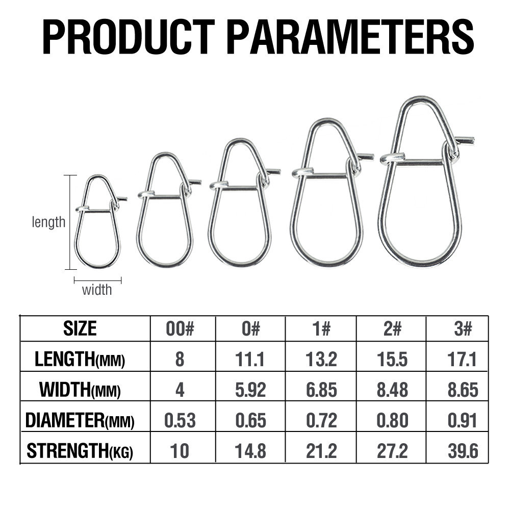 100Pcs Fishing Lure Connector 10-39.6Kg High Strength Snap 00#-3# Connector Buckle Stainless Steel Material Fishing Accesories For Saltwater
