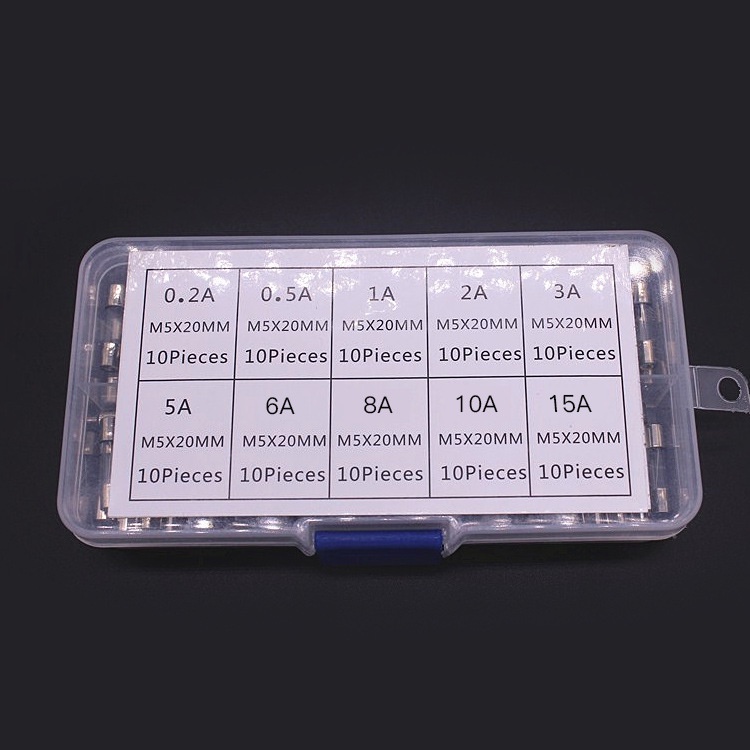 100Pcs/Set Glass Tube Fuses Kit 5x20mm Fast-Blow Glass Tube Fuses Kit 250V Glass Fuse Tube