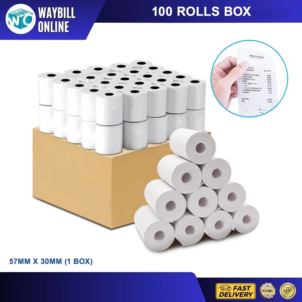 100 ROLLS Receipt Paper 57mm x 30mm Core Coreless 70GSM for POS Thermal Receipt Printer 1BOX