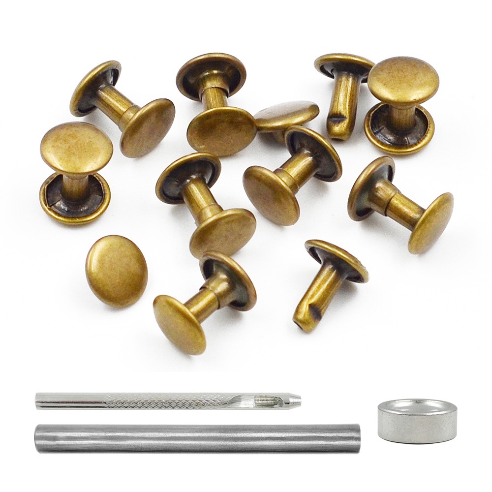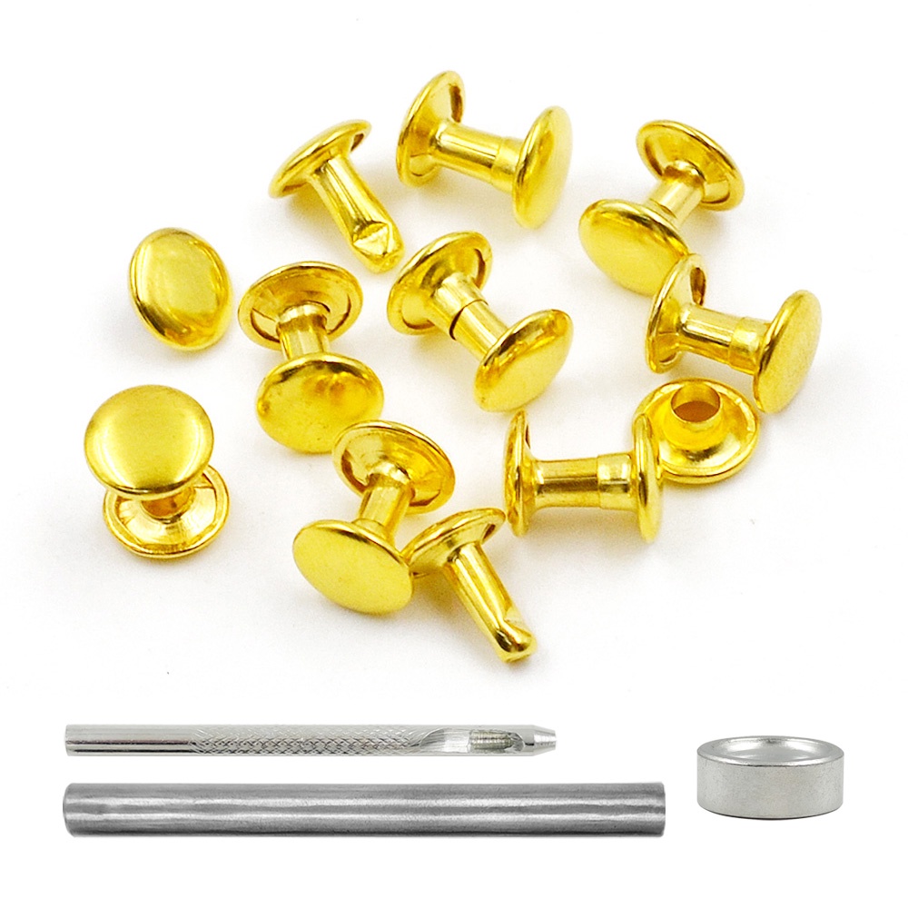 100Sets 5-10mm Metal Double Cap Rivets Stud Rivet Button Round Nail Spike For Leathercraft Repair Shoes Bag Belt Clothing Garment Accessories With Tools