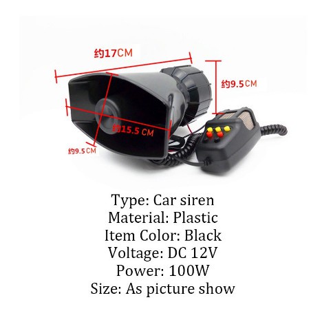 100W 7 Sound Car Electronic Warning Alarm With Microphone Fire Ambulance Blaring Police Siren