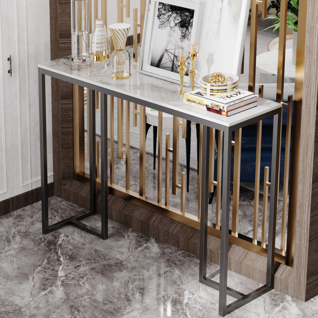 100cm Nordic Modern Slim Narrow Hallway Console Table Hall Entryway Furniture with Black Metal Legs