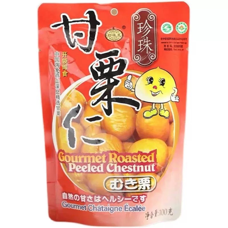 100g Organic Gourmet Roasted Peeled Chestnut,The snacks are ready to eat after opening the bag.