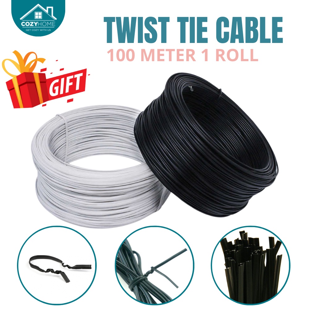 100m 1 Roll Plastic Twist Tie Cable Tie PVC Black / White Coated Garden Plant Ties for Gardening
