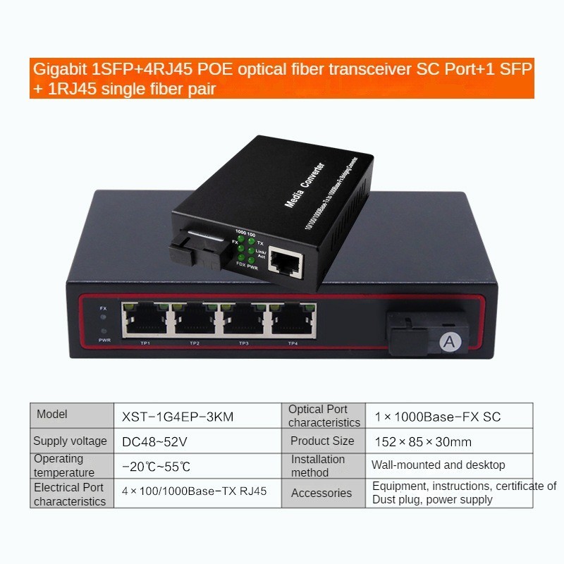100m/gigabit POE Optical Fiber Transceiver 1/2SFP+2/4/8RJ45 Mode Single Fiber Switch Series Level Connection SC Port