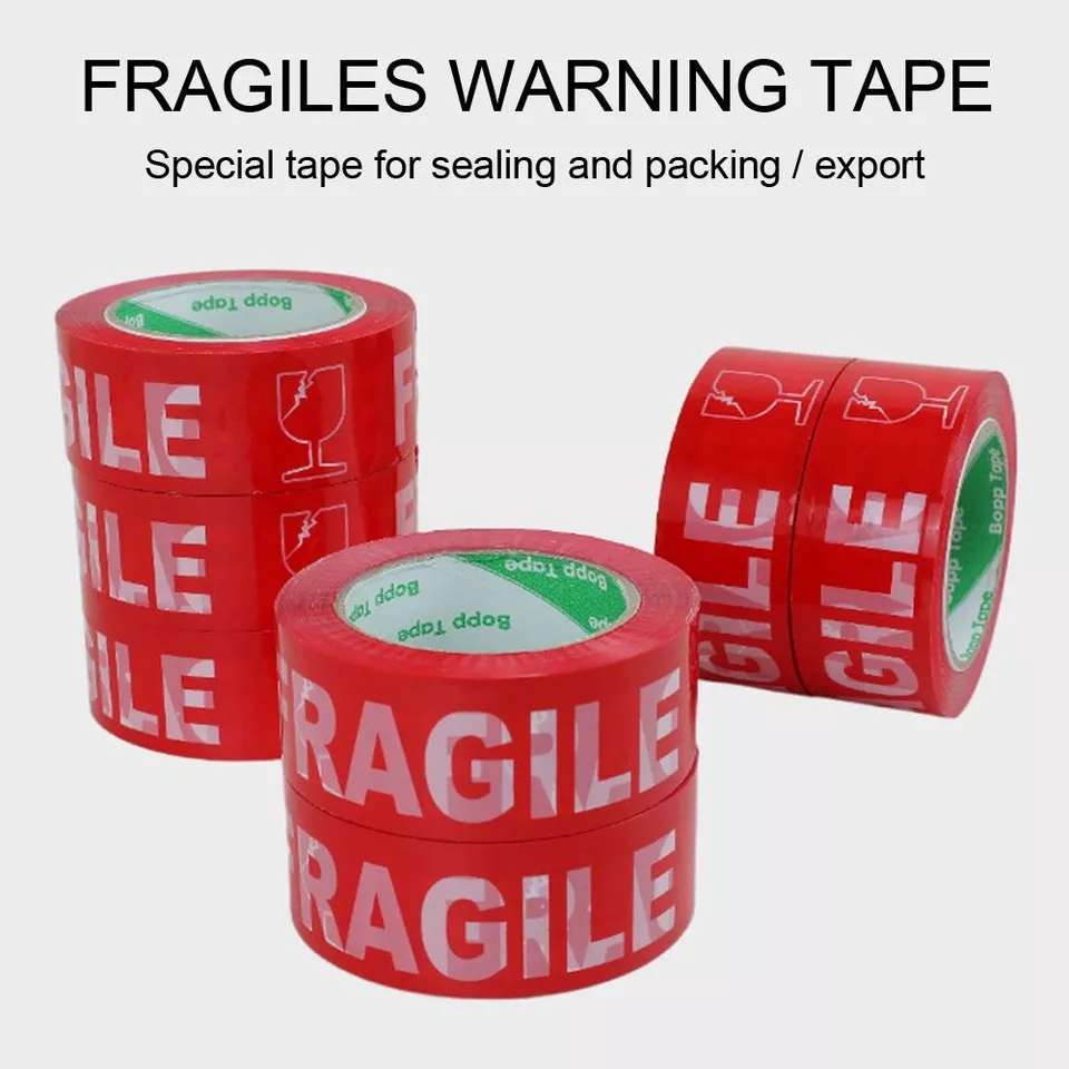 100mSticky Label Red Fragile Warning Label Sticker Fragile Handle with Care Thank You Packaging Tape