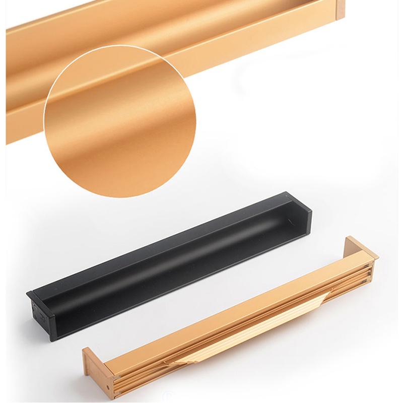100mm-500mm Hidden Door Handle Black Gold Embedded Handle Aluminum alloy Door Invisible Cabinet Handle Recessed Pulls Knob Furniture Hardware