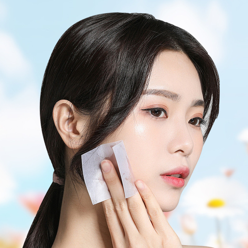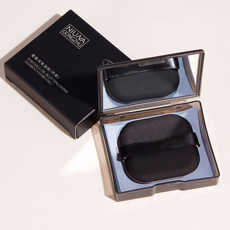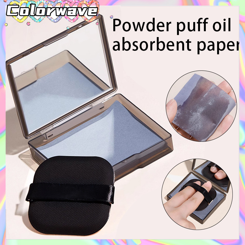100pc 3 in 1 Lavender Oil-absorbing Paper for Face with Powder Puff and Mirror Bamboo Charcoal Paper