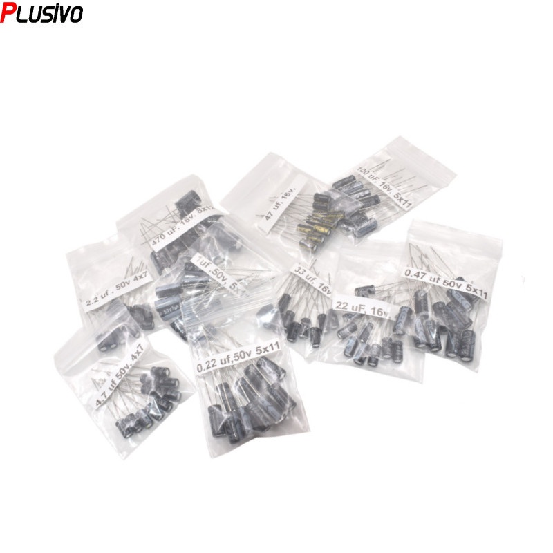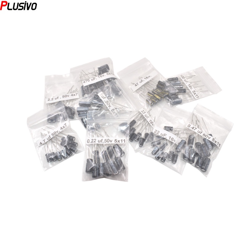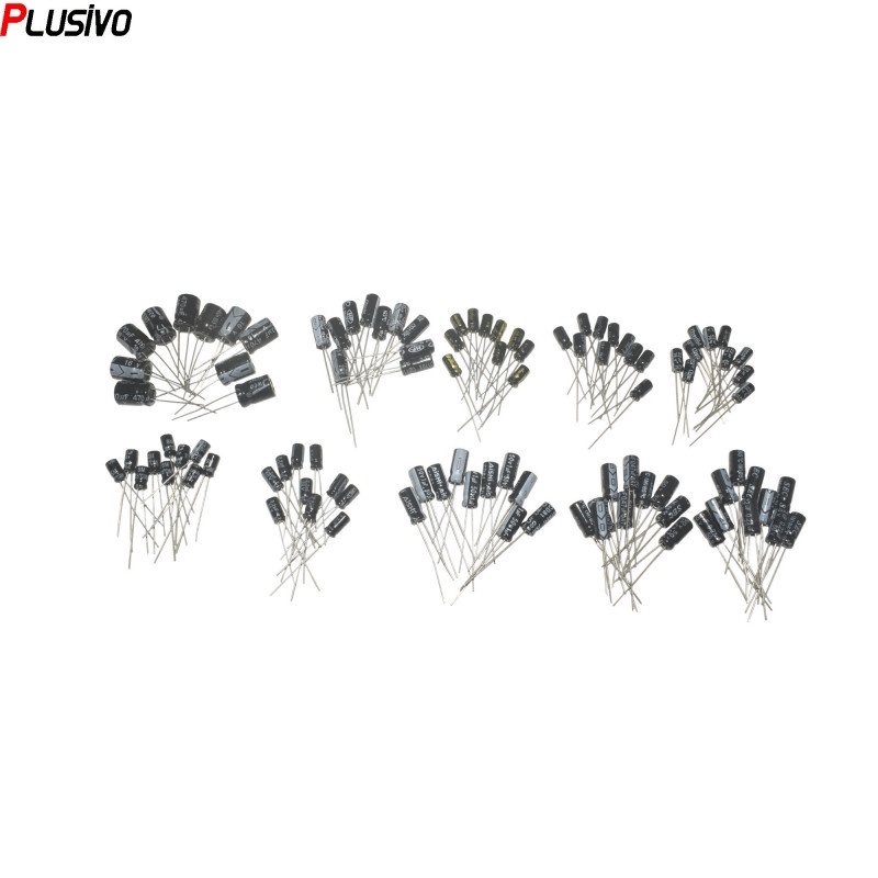 100pcs 10 Values 0.22 uF - 470 uF Aluminum Electrolytic Capacitor Assortment Kit Set Pack