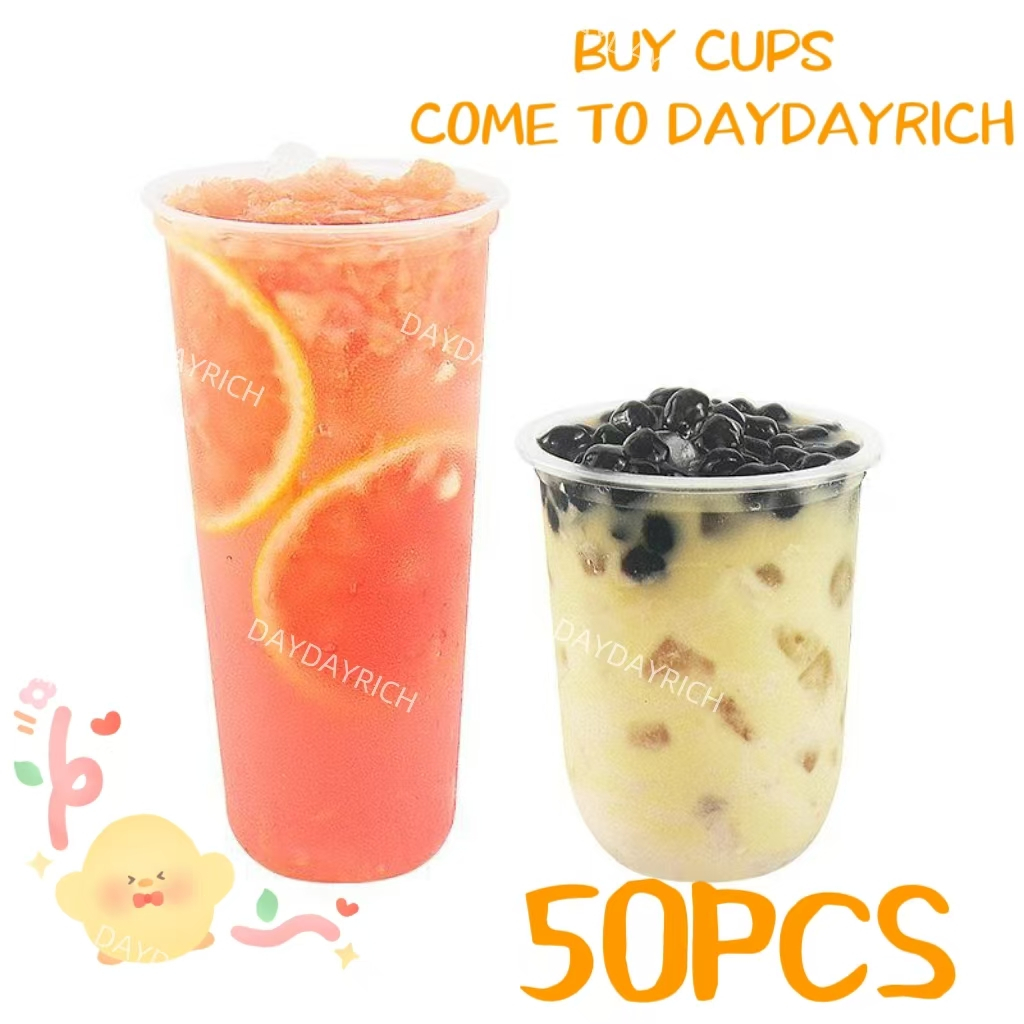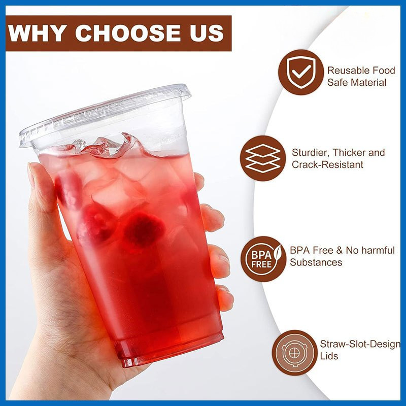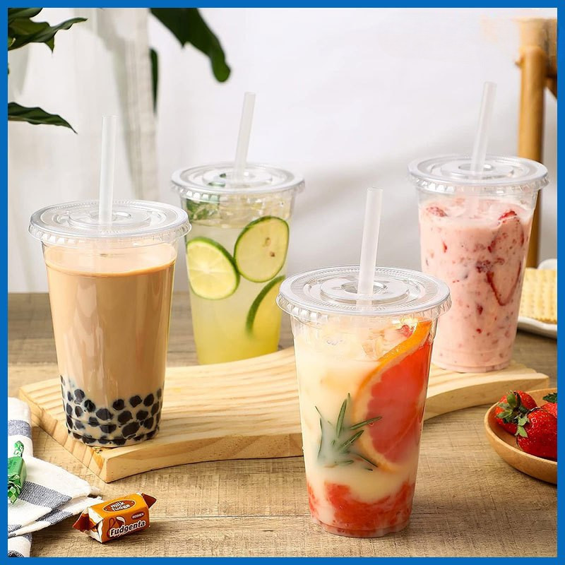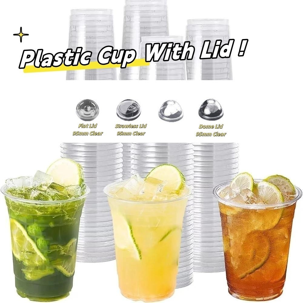 100pcs 16oz cup for halo-halo Milk Tea Cup With Lid Plastic Cups With Lid Disposable8/12/16/22oz