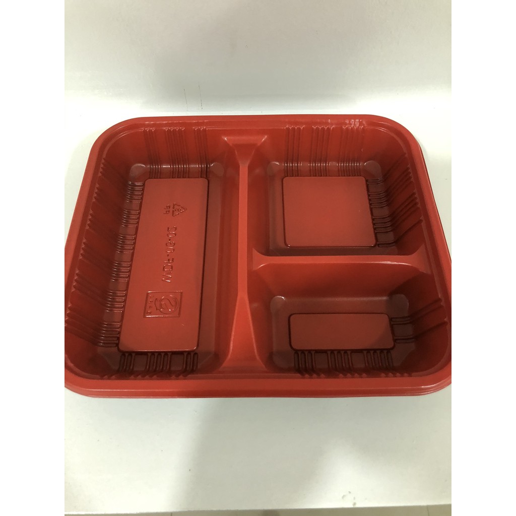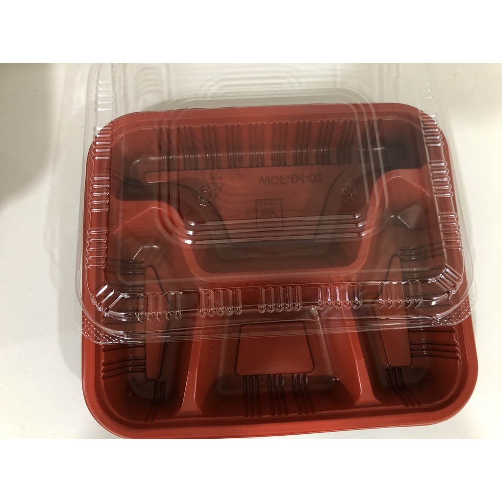 100pcs 2/3/4/5 division bento box meal with lid lunch box red and black meal (Thick Quality)