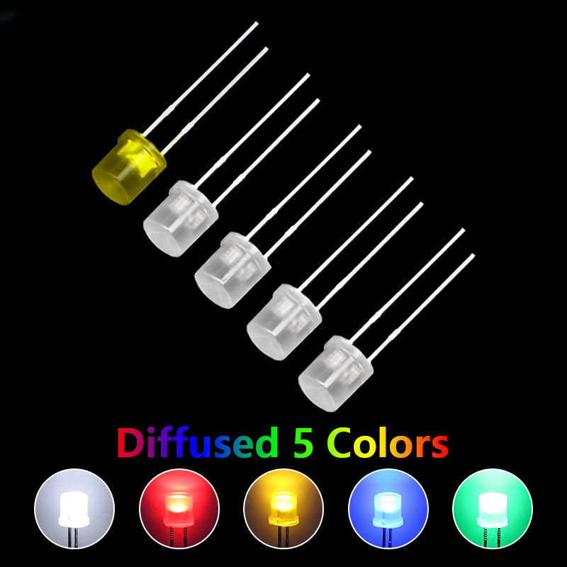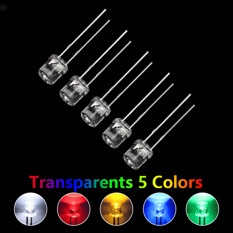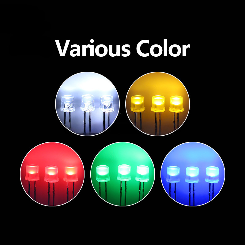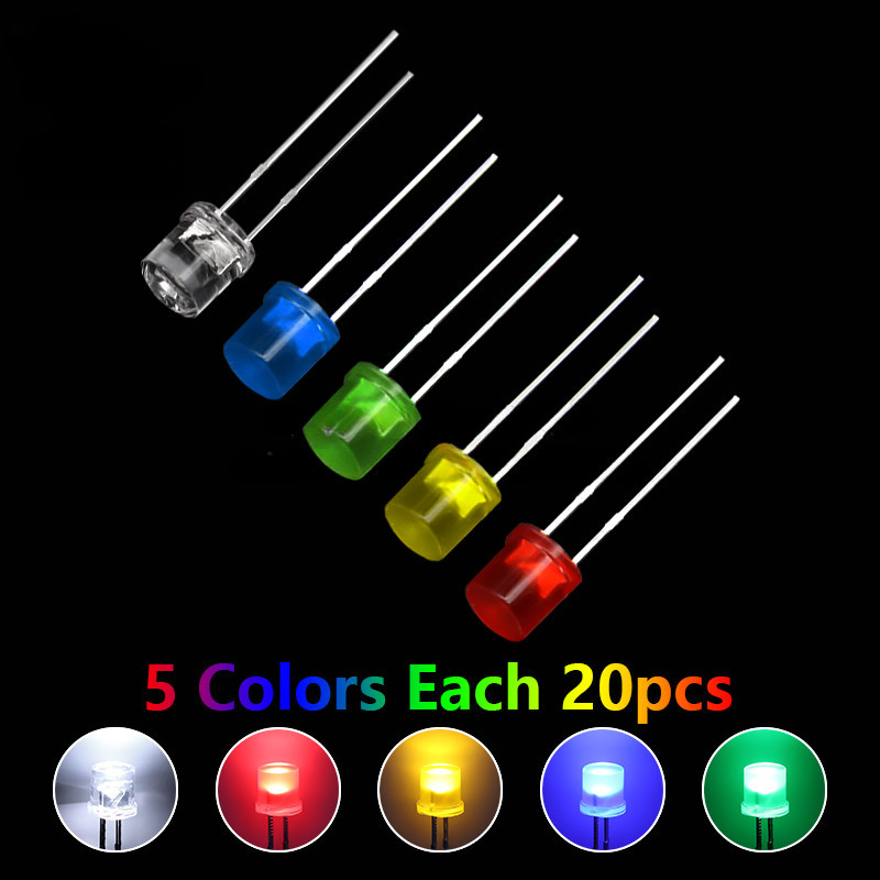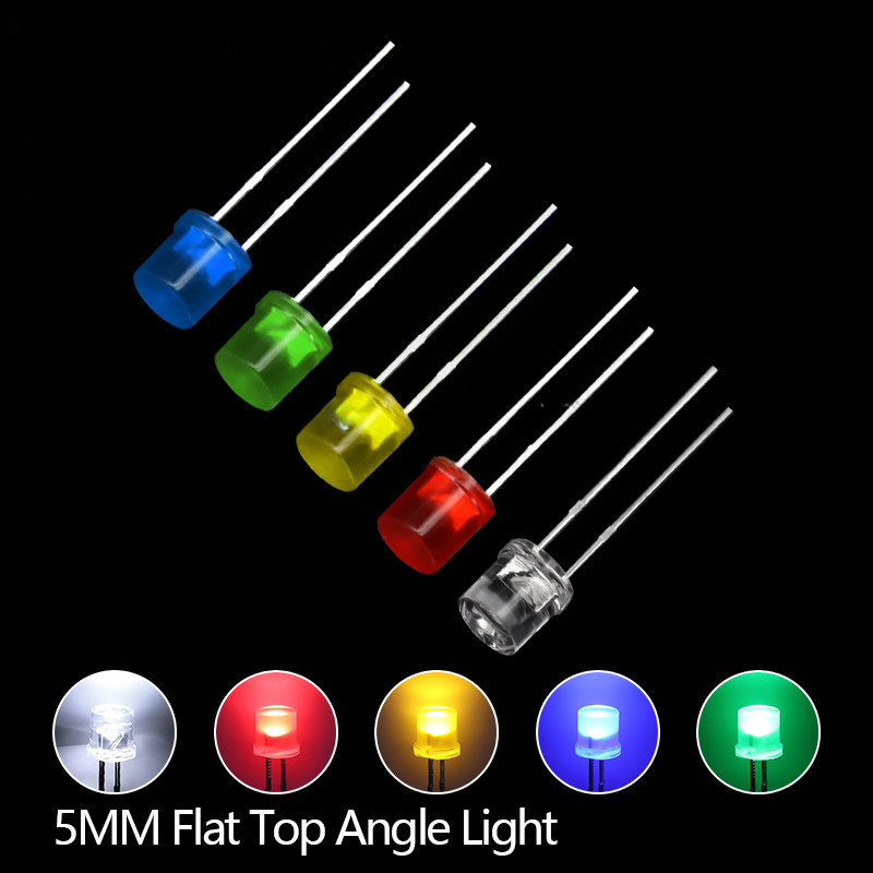 100pcs 5mm Flat Top White Red Yellow Blue Green Assorted Kit Lamp Diode LED Ultra Bright Bulbs Emitting Diodes F5 5MM DIY Light