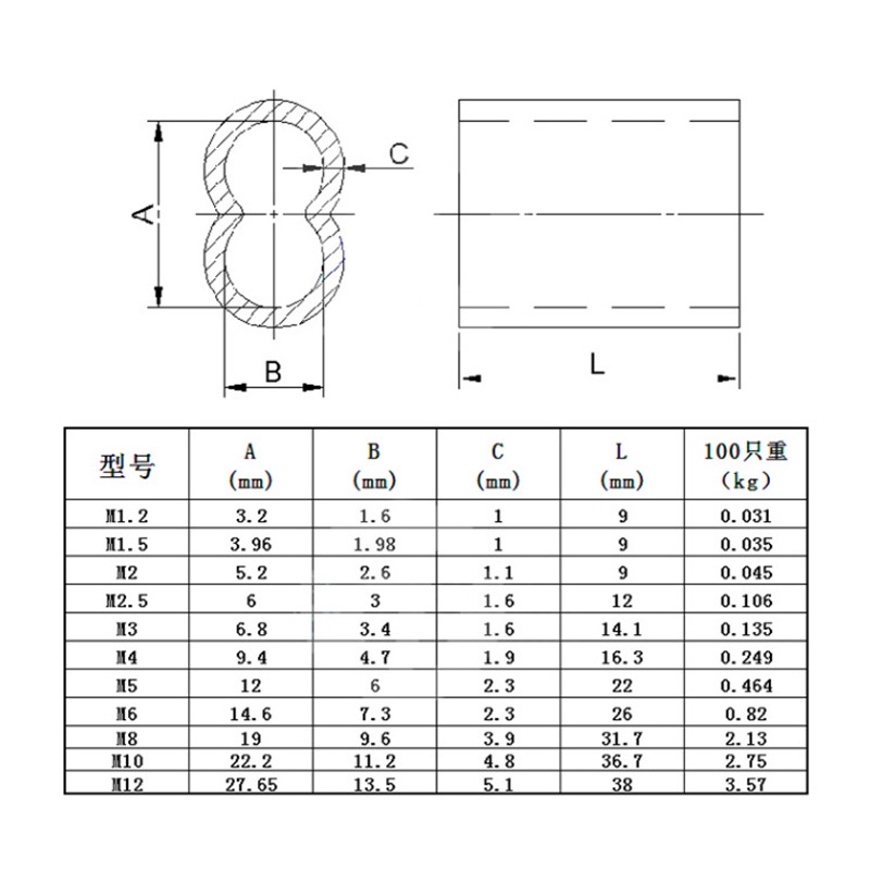 100pcs Aluminum Cable Crimps Sleeves Clip Fittings Loop Sleeve Ferrule Stop Double Hole For Wire Rope Sleeves Clamps M1.2-M12