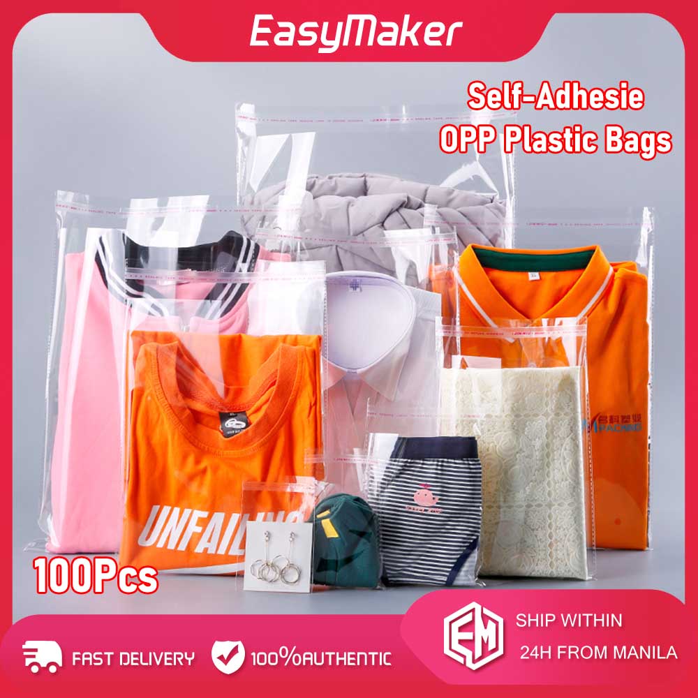 100pcs Clear Plastic Self Adhesive Bag Self Sealing Clothes Packing Resealable T-Shirt Packaging Bag