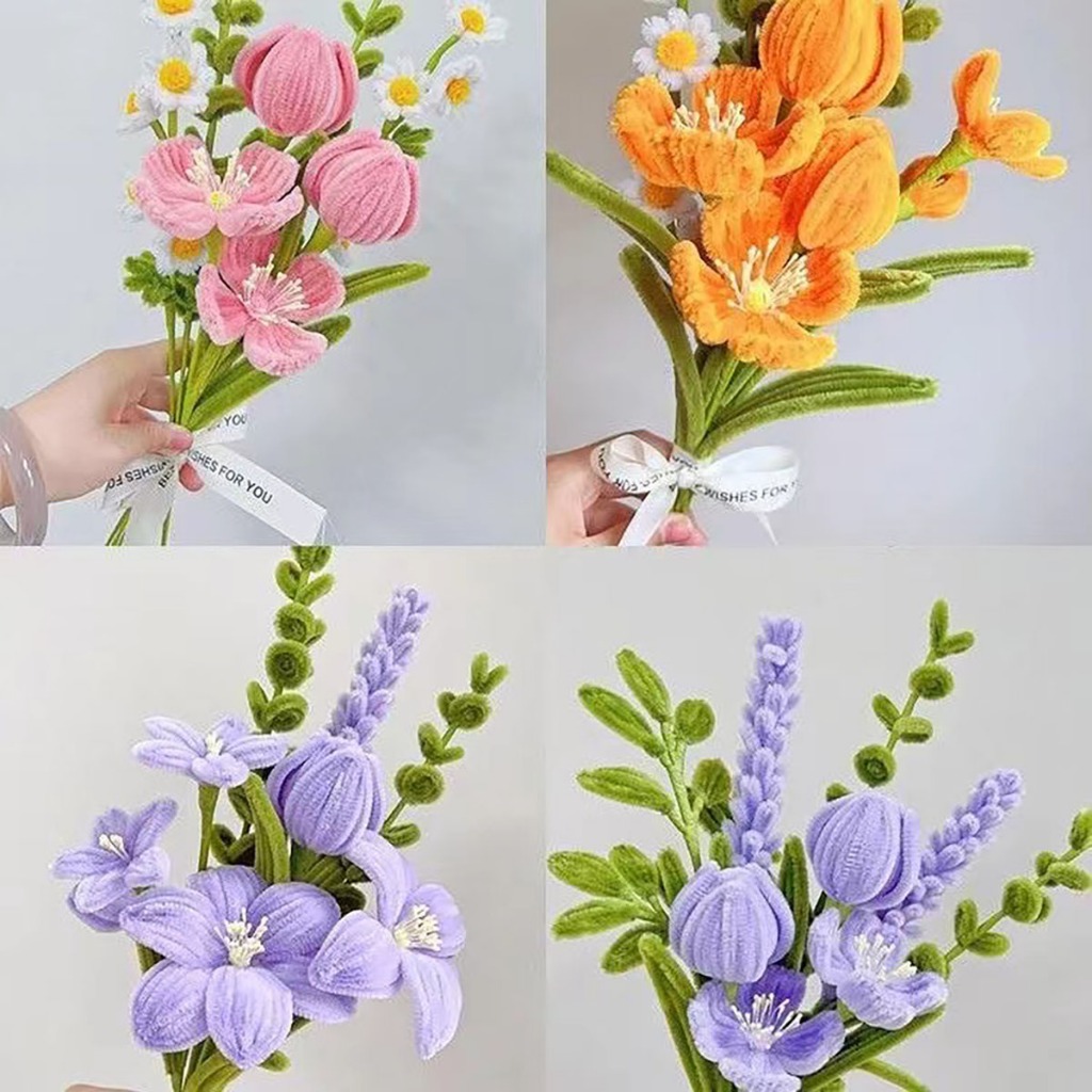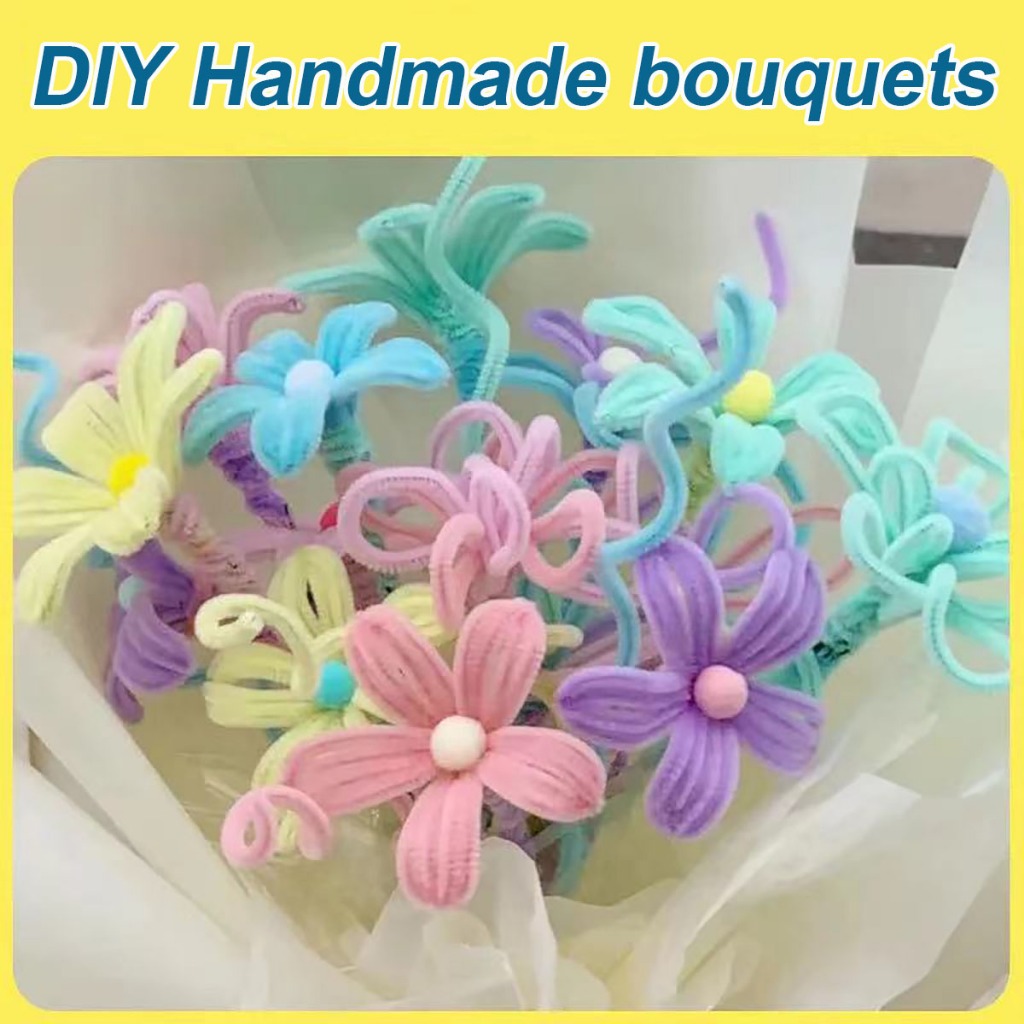 100pcs Colorful Dense Fuzzy Wire Pipe Cleaner Craft Flower DIY Handmade Bouquet Children's Handmade