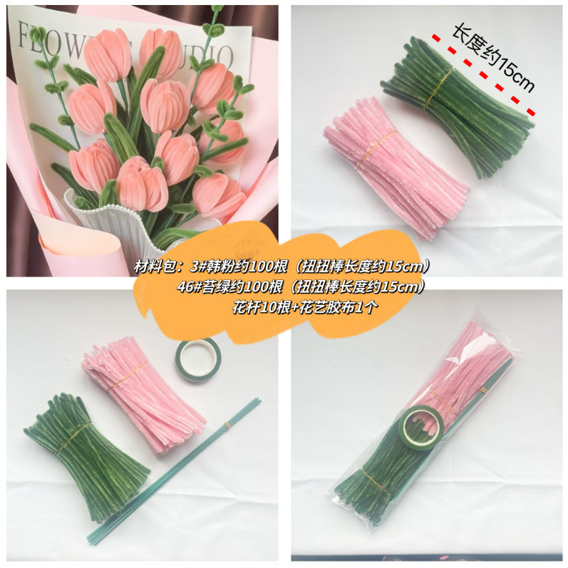 【MOTHER'S DAY gift】100pcs Colorful Fuzzy Wire Pipe Craft Flower Chenille Children's DIY Wool Strip Macaron Handmade Toy