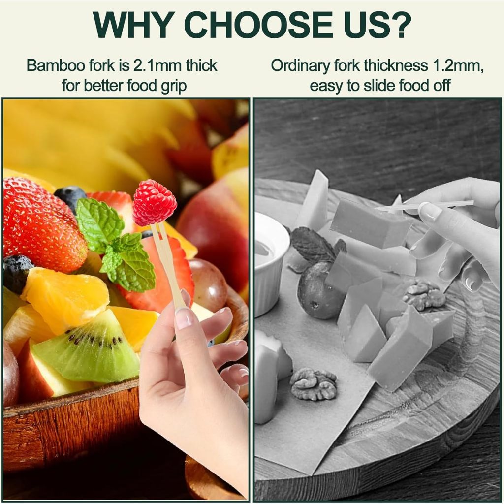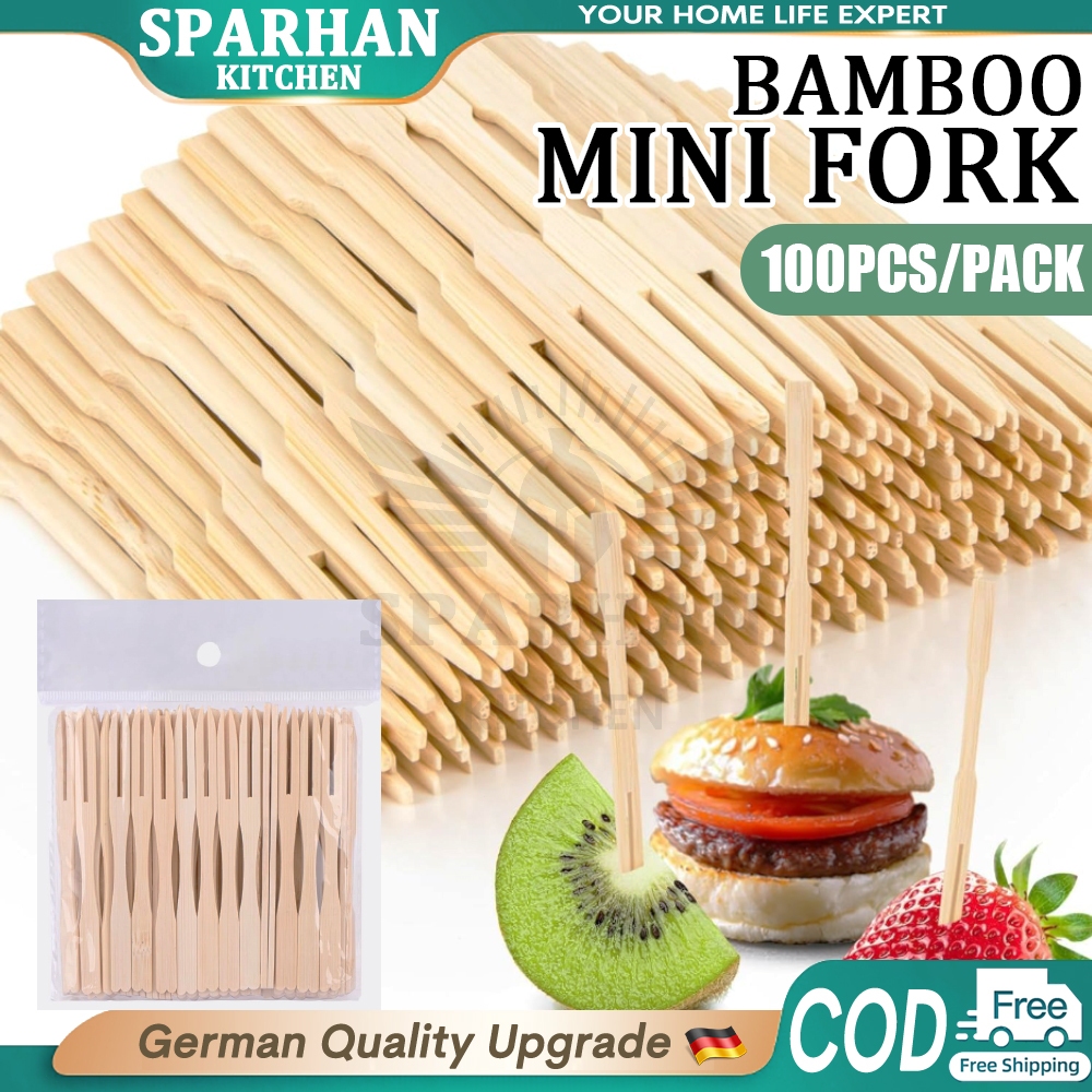 100pcs Disposable Bamboo Mini Fork 9cm For Desserts, Sandwiches, Burgers, Salads, Buffets,Vegetables