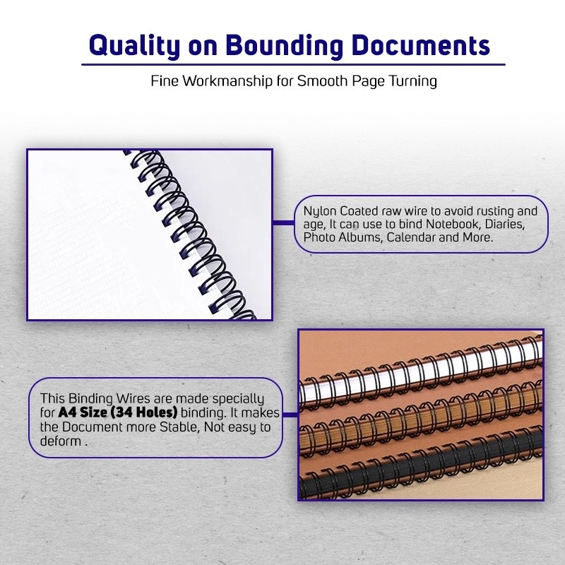 100pcs Double Loop Metal Wire A4 Size 7.9cm 3:1 Pitch 60 Sheet Capacity 34 Holes Double Loop Wire