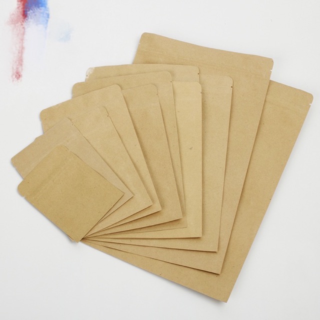 100pcs Full kraft pouch resealable flat non-standup pouch