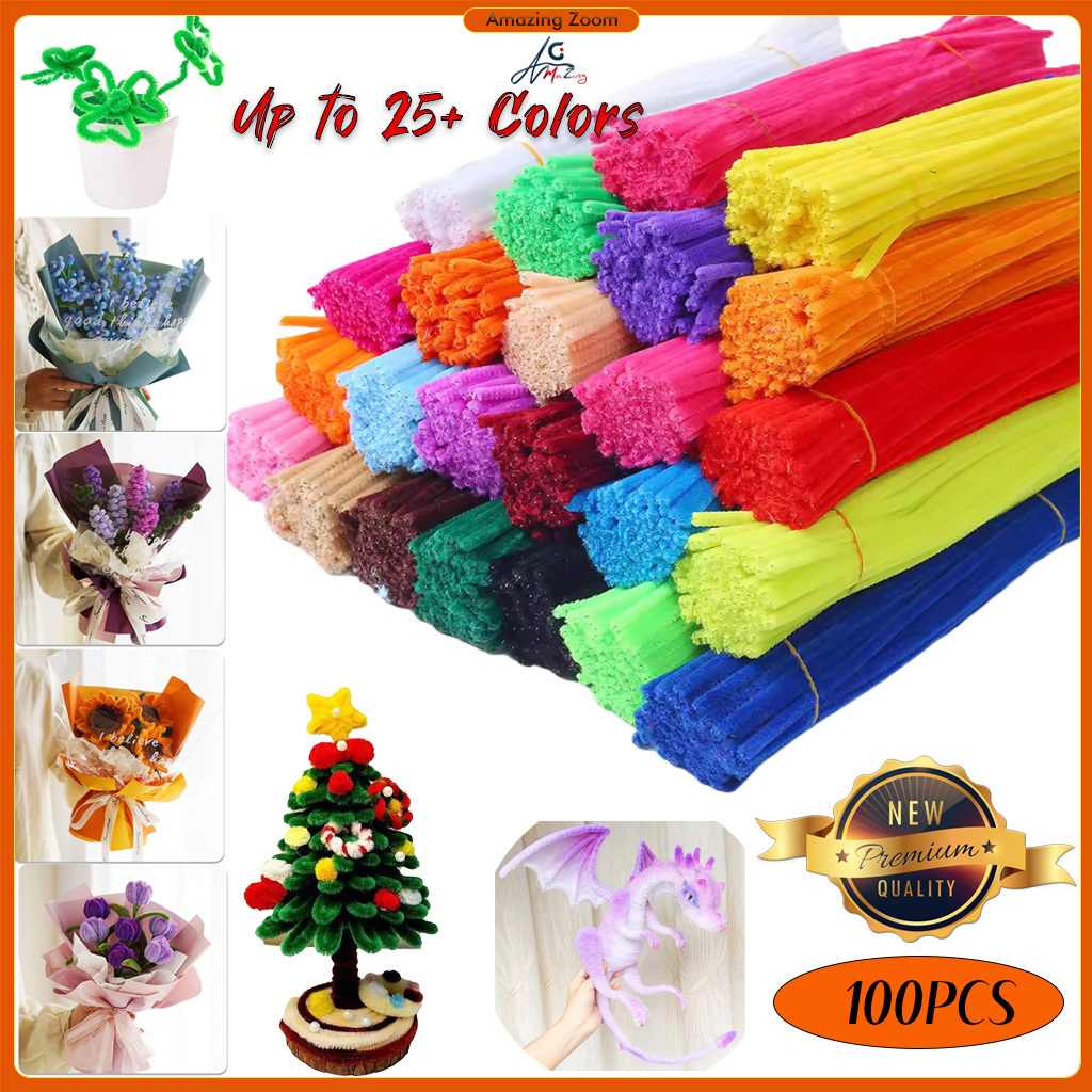 100Pcs Fuzzy Wires Chenille Twisted Sticks Bar Anvil Wire Craft Pipe Creative Children Plush Stick
