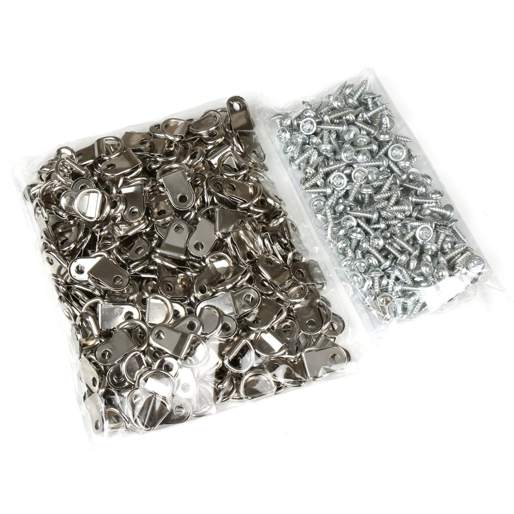 100pcs Golden Silver Picture Frame Hanger Triangle D-Ring Hanging Wall Hooks Hangers With Screws