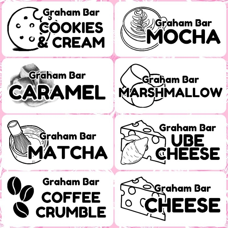 100pcs Graham Bar Sticker Label (black&white) Waterproof