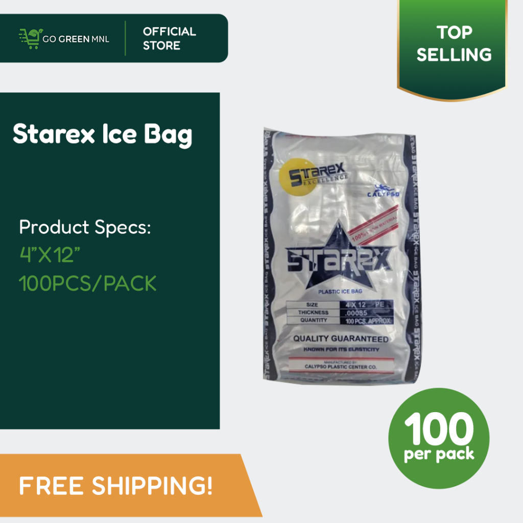 100pcs ICE BAG 4"x 12" & 5" x 12" Mucho Cinco Dose YELO PLASTIC SHURE & STAREX Brand (Softdrinks)