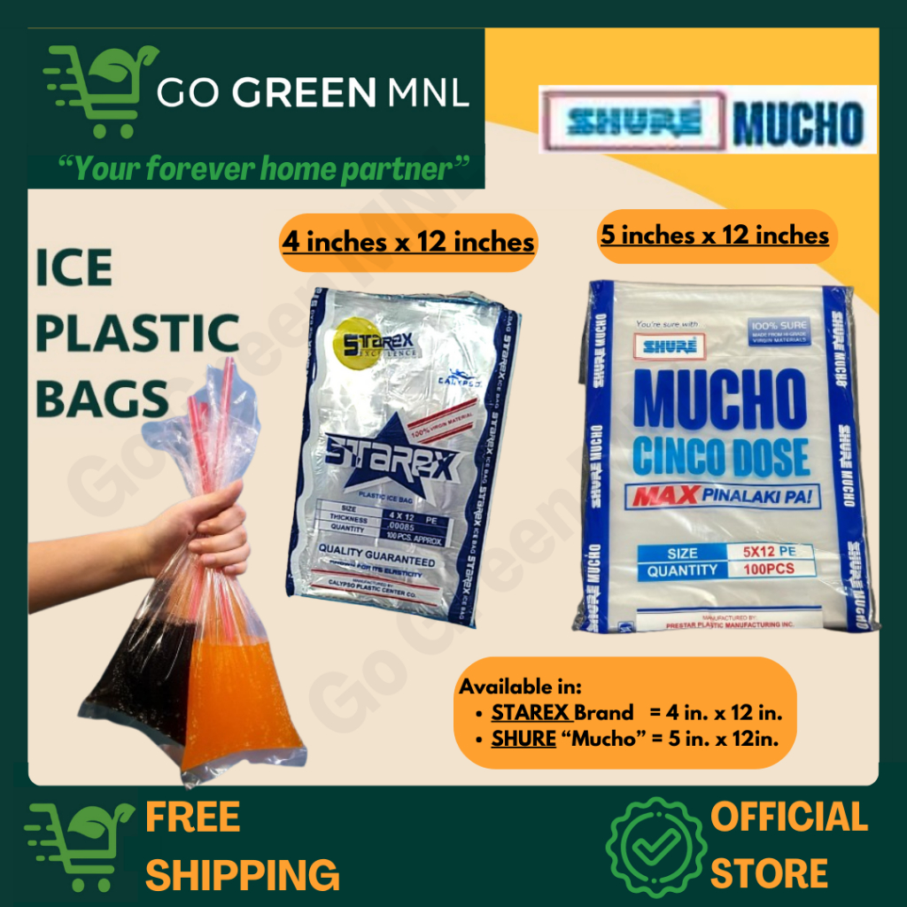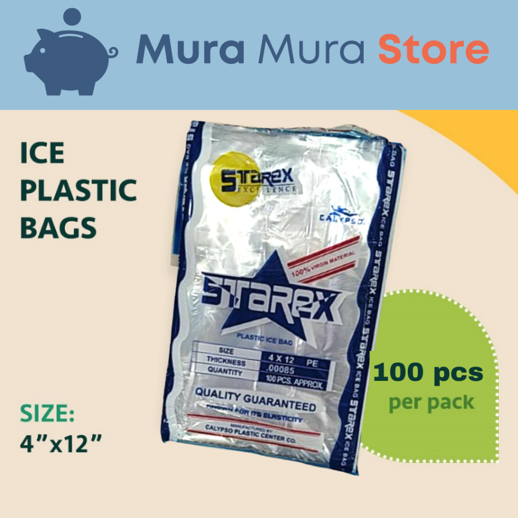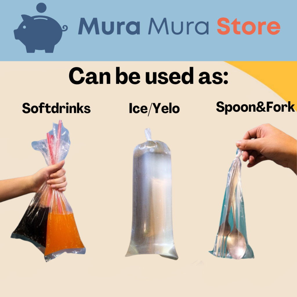 100pcs ICE BAG 4"x 12" YELO PLASTIC (ICE BAG/FISH CARRY/SOFTDRINKS BAG/SPOON & FORK)