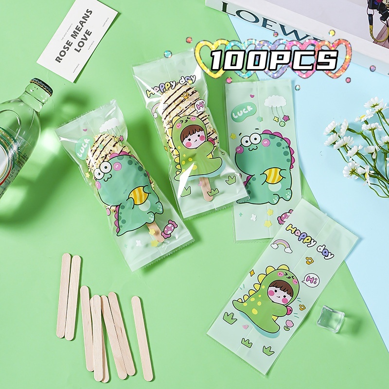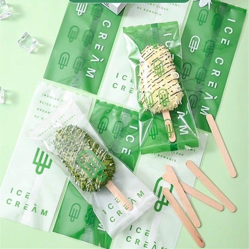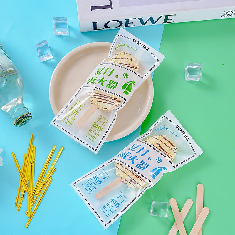 100pcs Ice Cream Heat Seal Wrapper Graham Bar Packaging 8x19 Ice Cream Plastic Gold Clear Popsicles