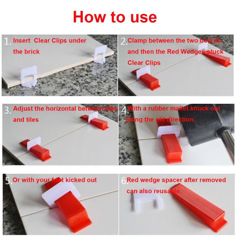100pcs Insert Wedge Tile Leveler Tile Cross Tile Push Pliers Tile Leveling System For Tile Laying