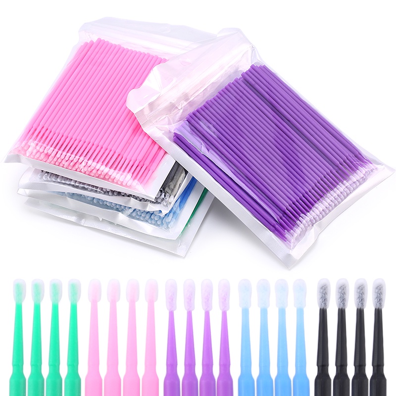 100pcs Long Head Disposable Microbrush Applicators Eyelash Extensions Eyelash Glue Cleaning Brushes Eyelash Brush