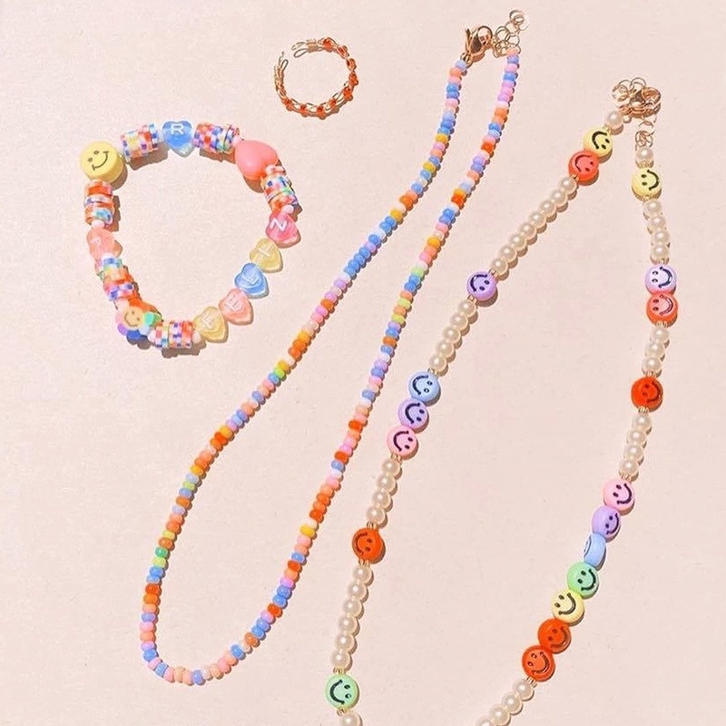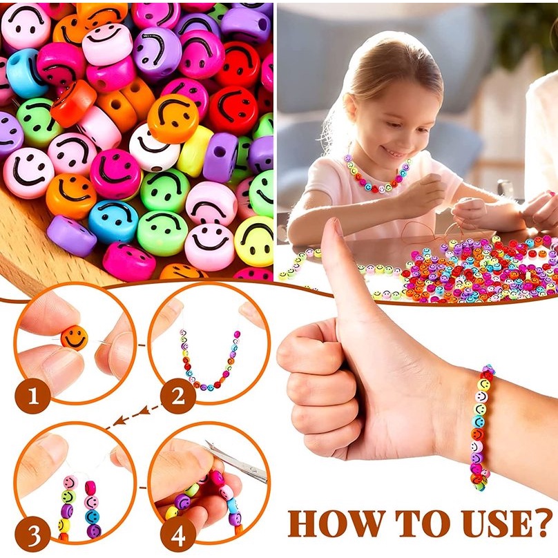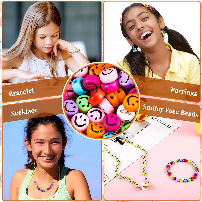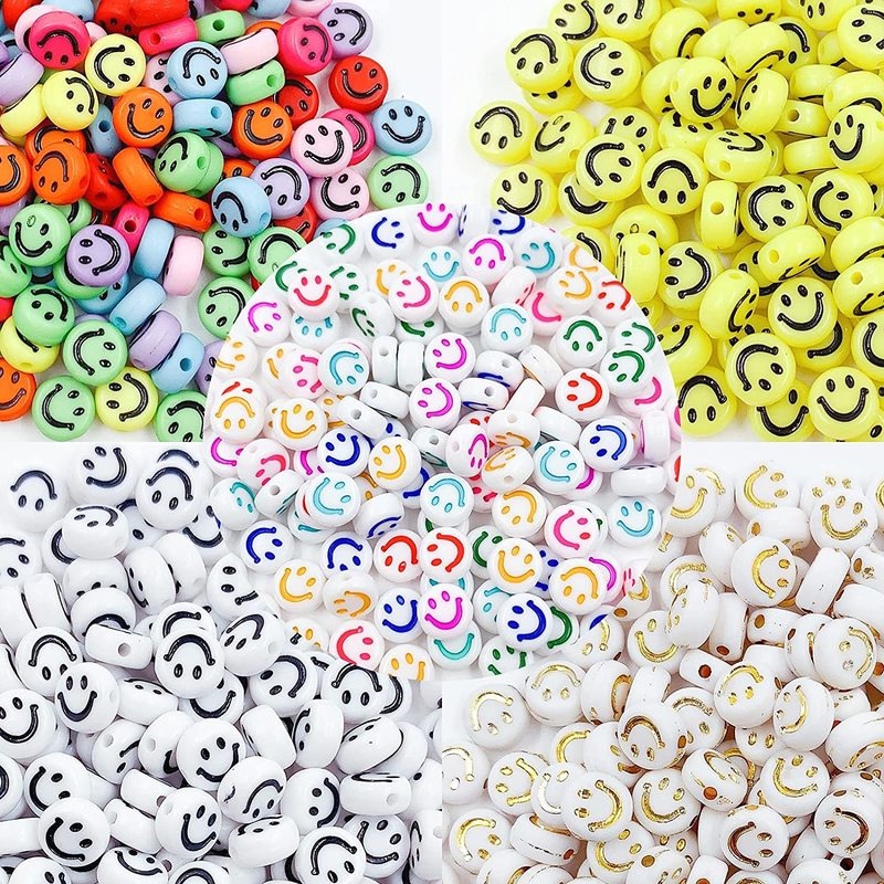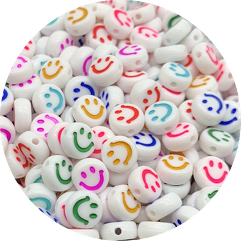100pcs/Lot 7mm Smiley Beads Oval Shape Acrylic Spacer Smile Beads for Kids Jewelry Making DIY Charms Bracelet Necklace