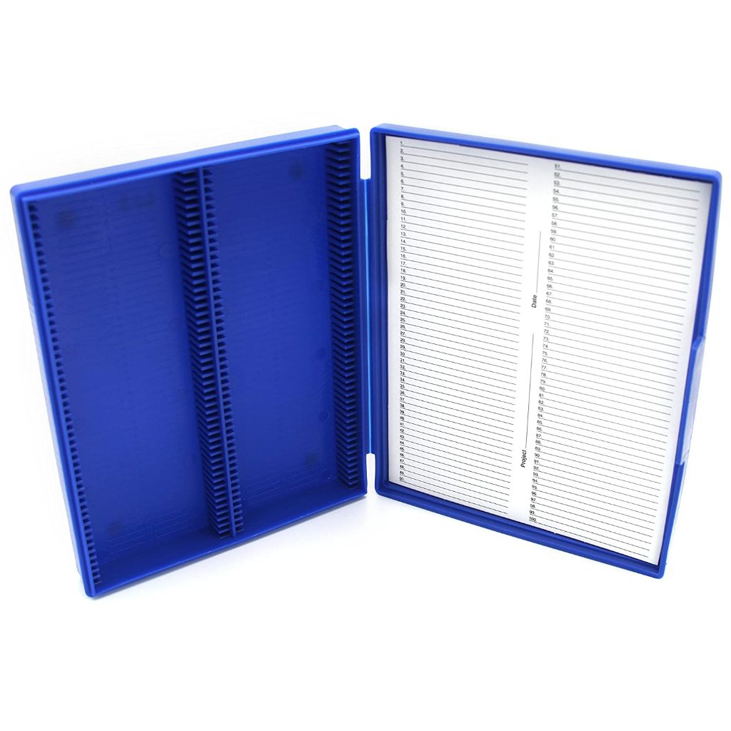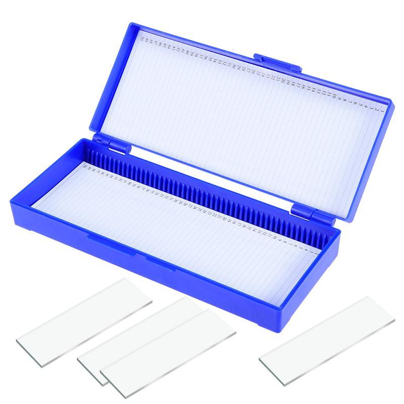 100pcs Microscope Slide Box Biological Pathology Rectangular Microscope Glass Slide Boxes Blue