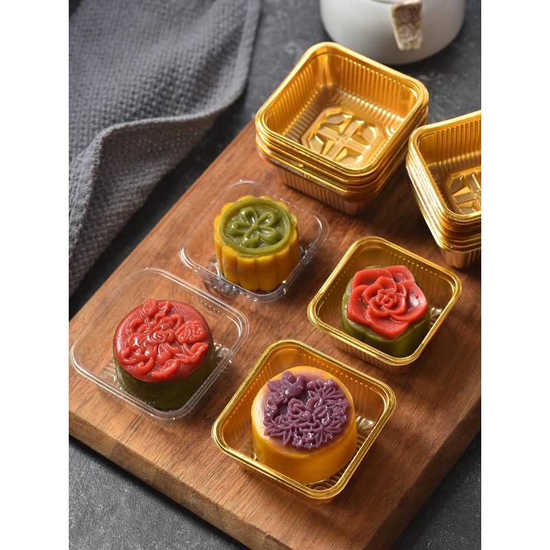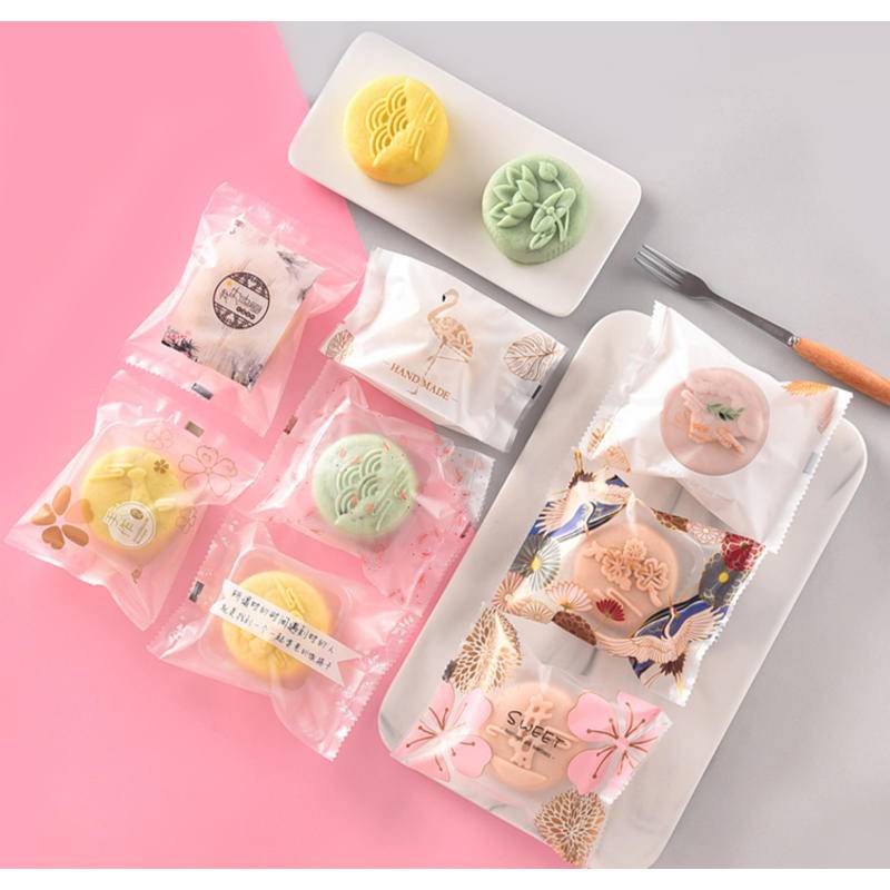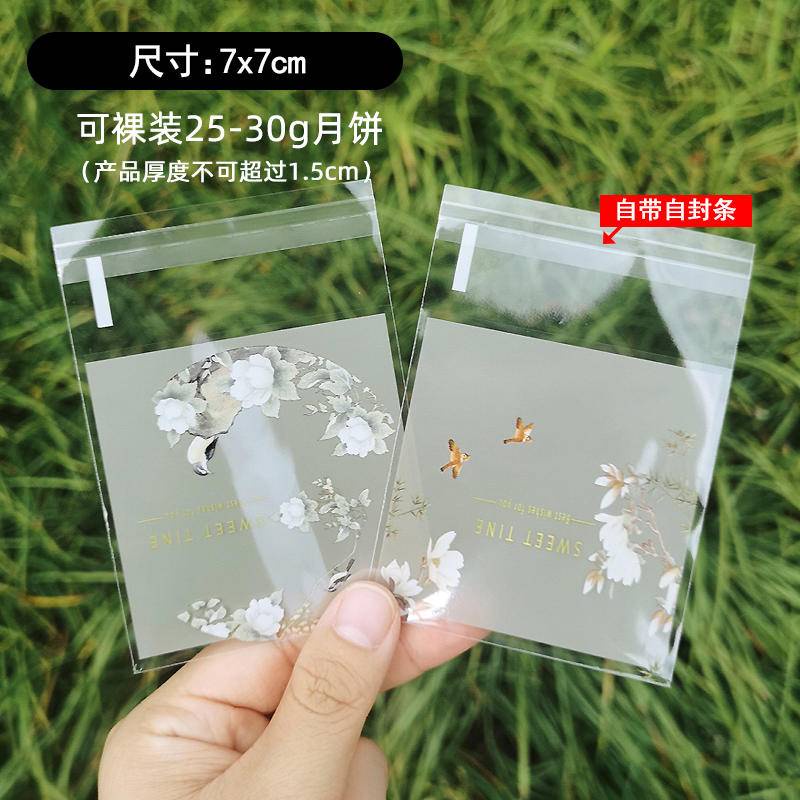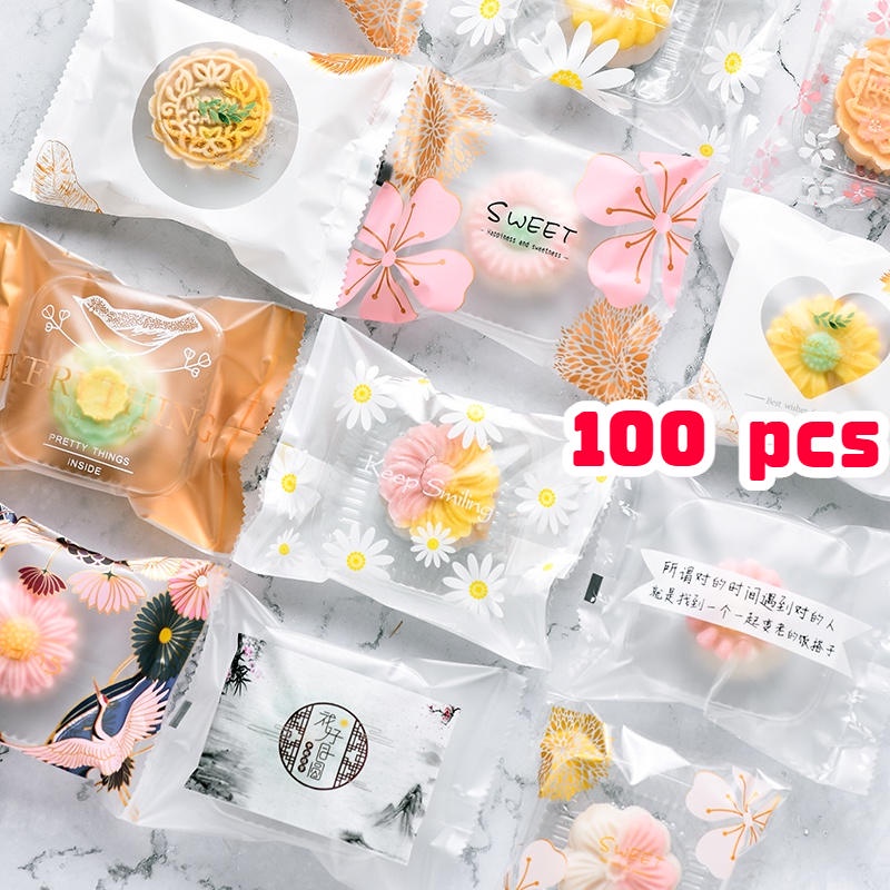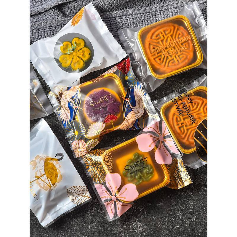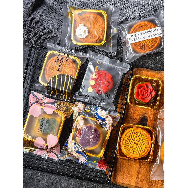 100pcs Mooncake Packaging Bag Plastic Transparent 75g Moon Cake Tray with Packaging Bag Self Adhesive Seal Machine Sealing 50gm 50g Packing Beg Wholesale 2022 63g 100g Kuih Case