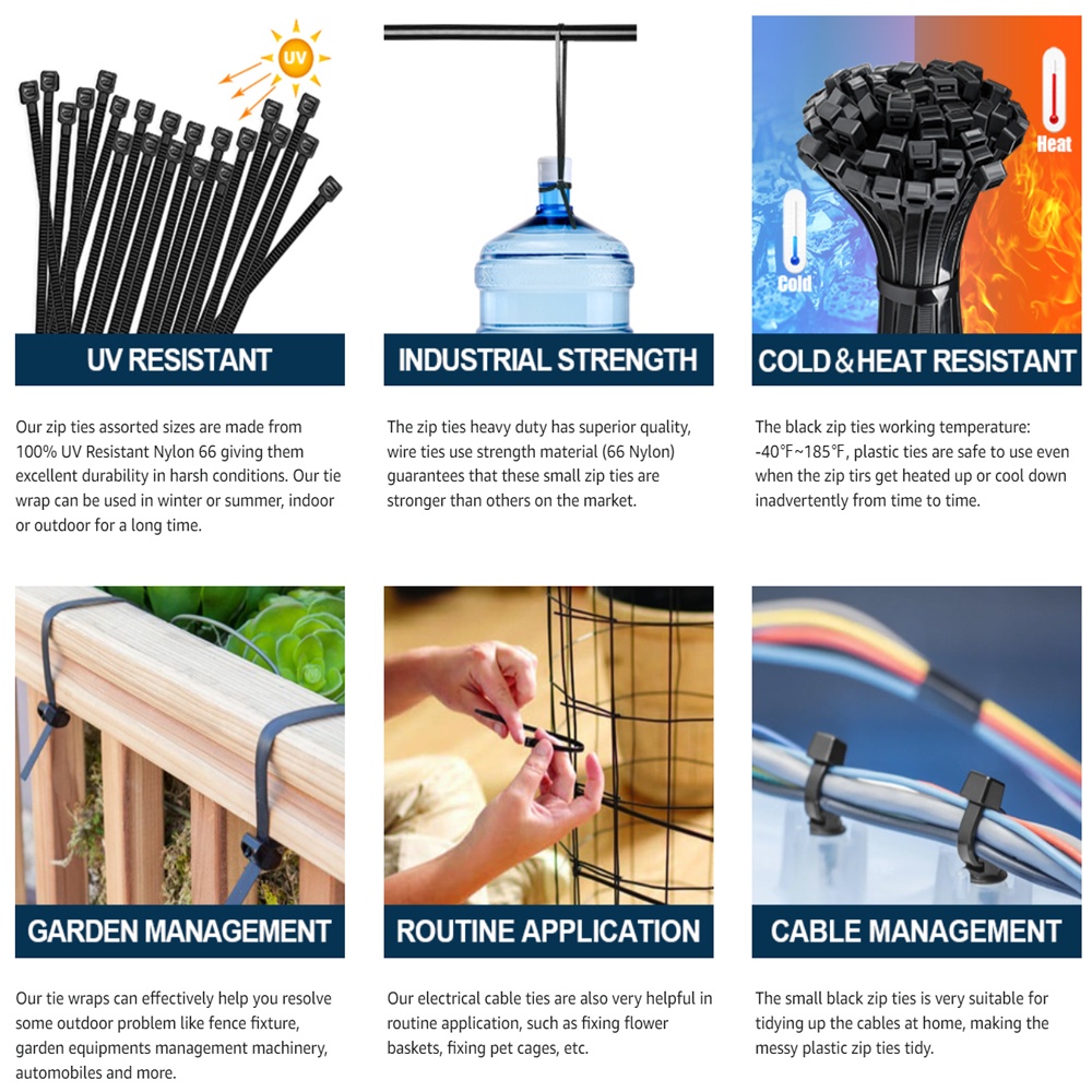 100pcs Multipurpose Nylon Cable Tie Zip Ties Adjustable Durable Self locking Nylon Zip Cable Ties