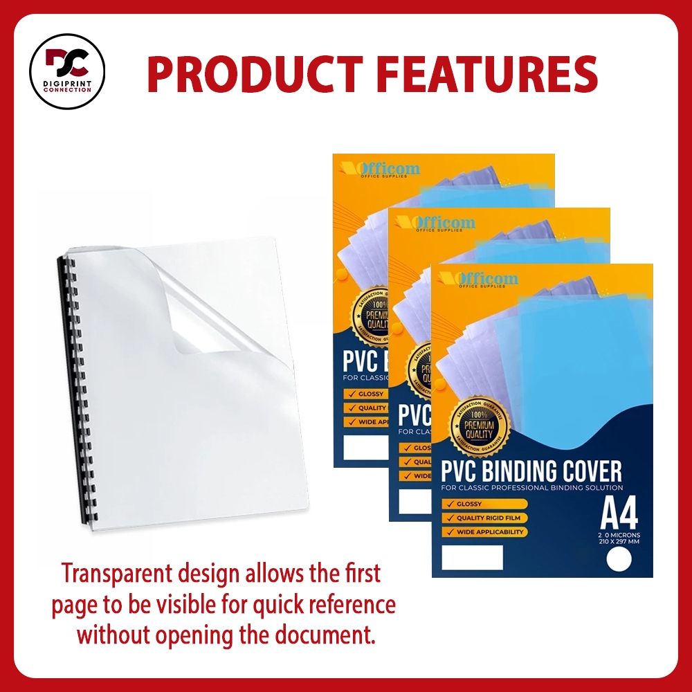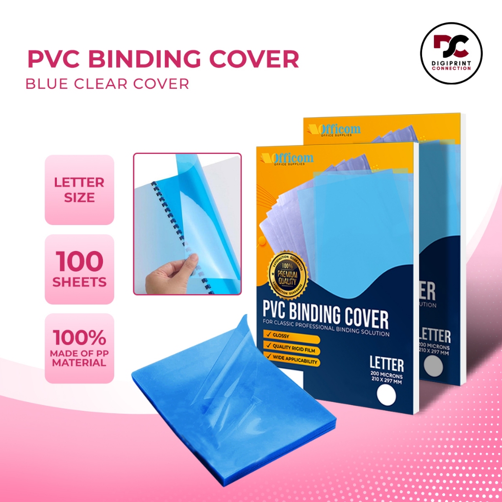 Officom PVC Binding Cover 100pcs Clear | Blue 200-250 Microns A4 Short Legal PP Frosted Premium Set