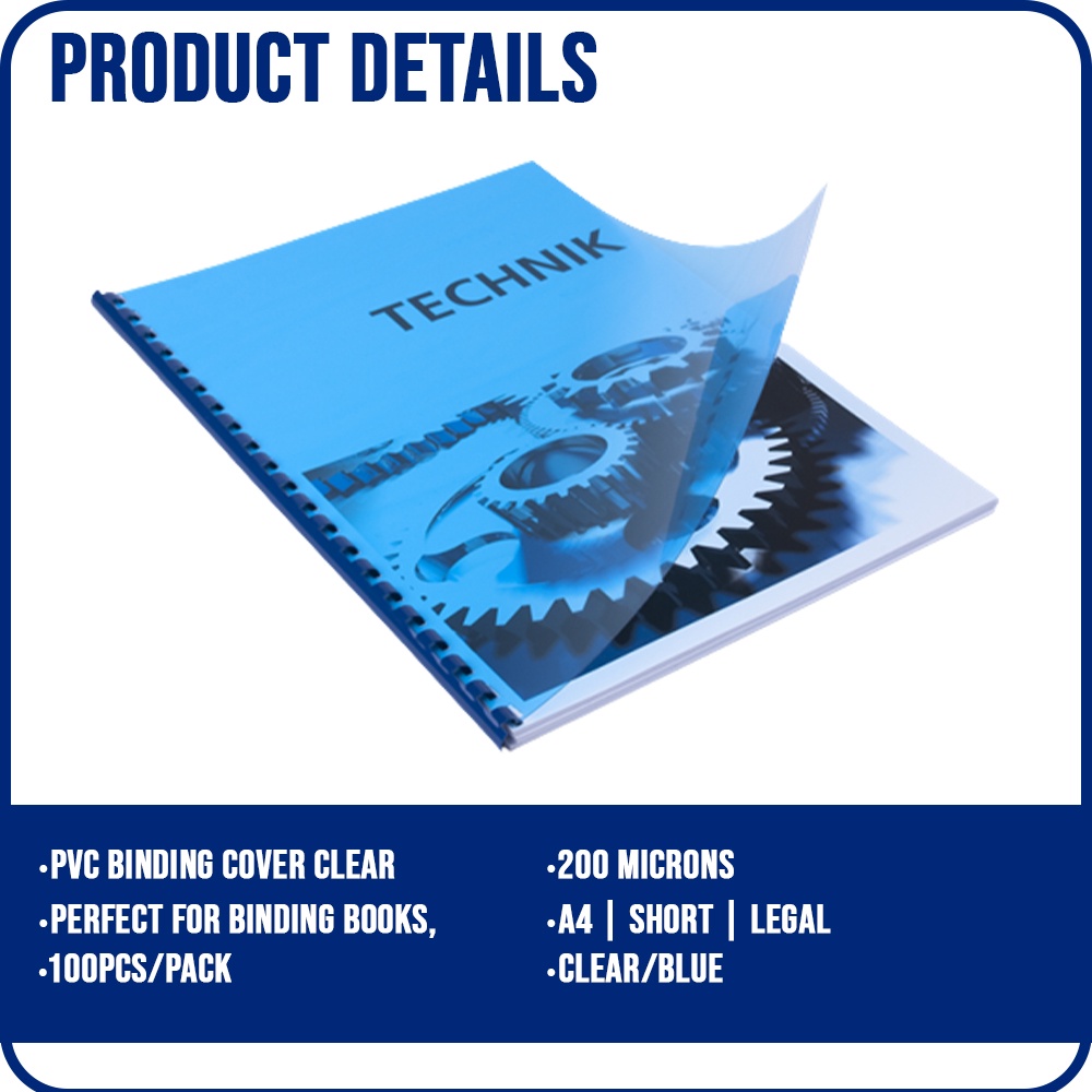 100pcs PVC Binding Cover Clear/Blue 200Microns A4/Short/Legal Size Officom Brand