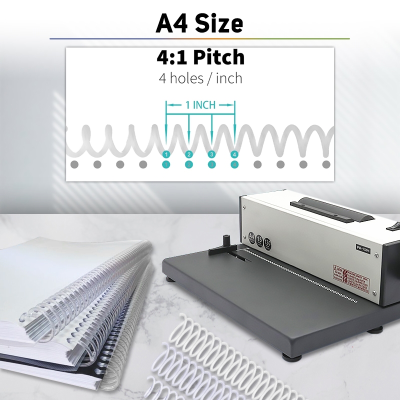100pcs Plastic Spiral Coil A4 Size 4:1 Pitch Plastic Coil Binder White / Transparent / Black