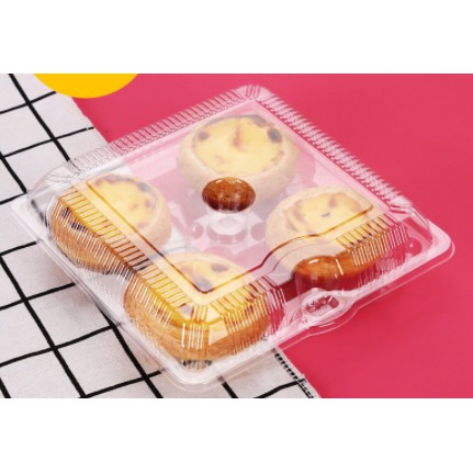 100pcs Round egg tart Clamshell 4 holes packaging for cupcakes, and other baked goodies