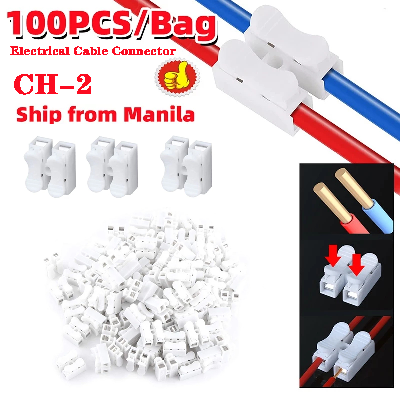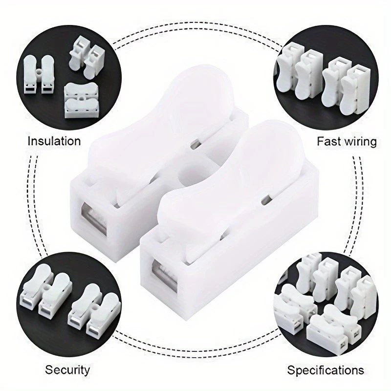 100pcs Self Locking Electrical Cable Connector CH2 250V 2 Pin Quick Splice Lock Wire Terminals