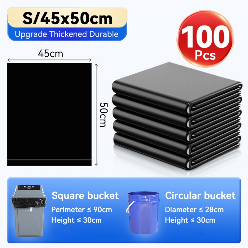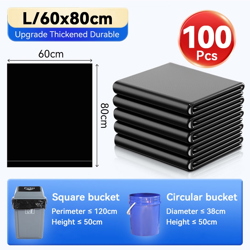 100pcs Trash bag Garbage bag Black (S/M/L/XL/XXL) Enlarged bag And Bag Thickened Kitchen Garbage Bag
