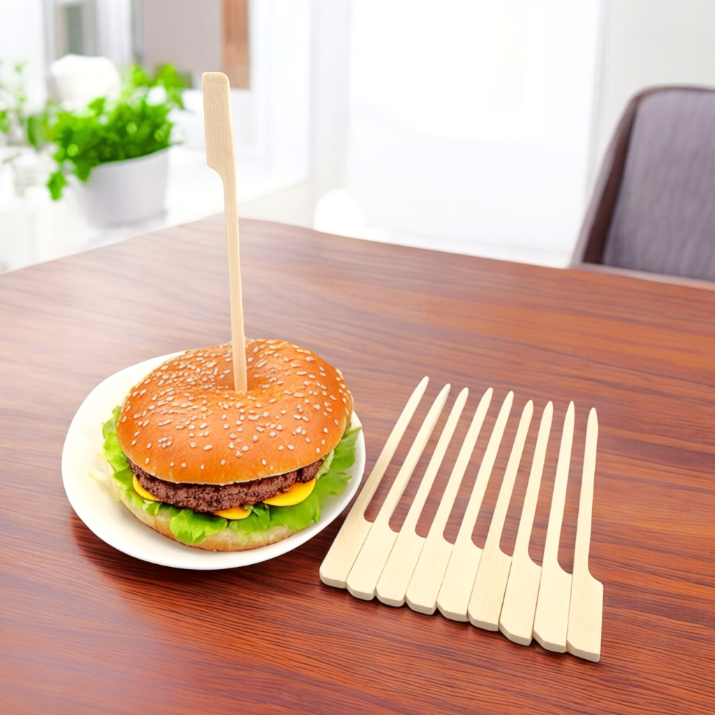 100pcs Wooden Bamboo Burger Stick Handle & Barbeque BBQ Sticks Handle