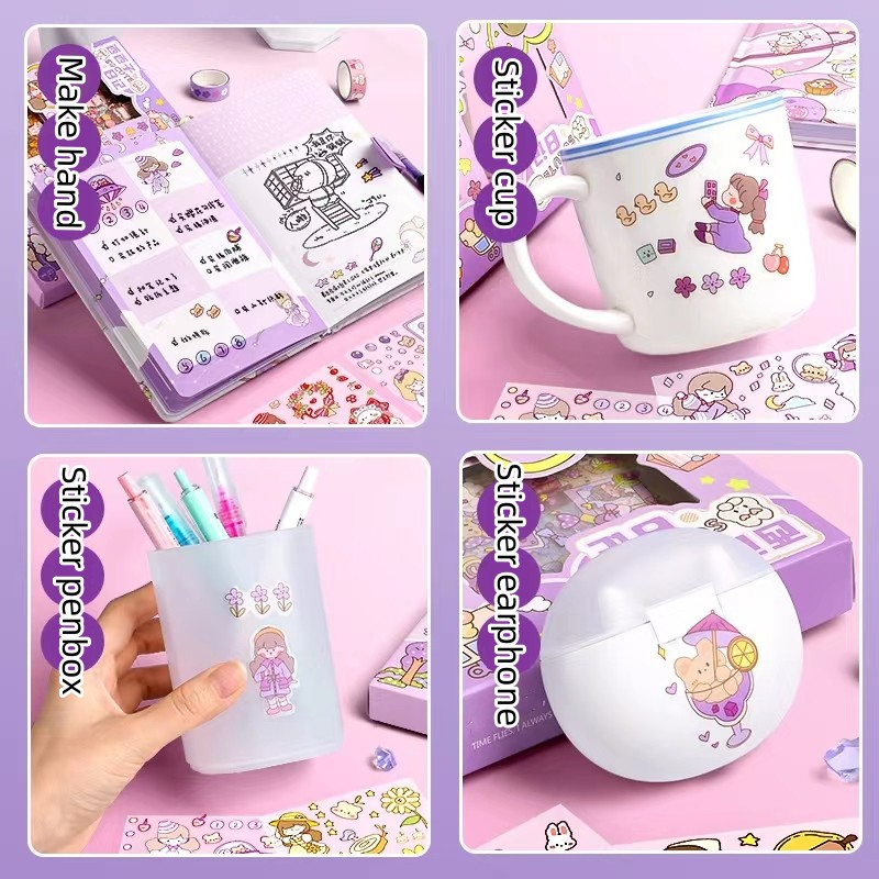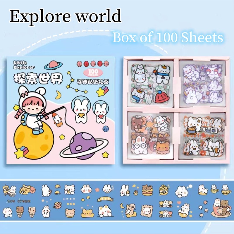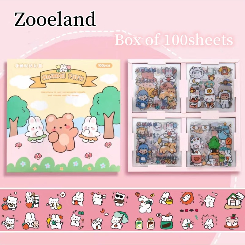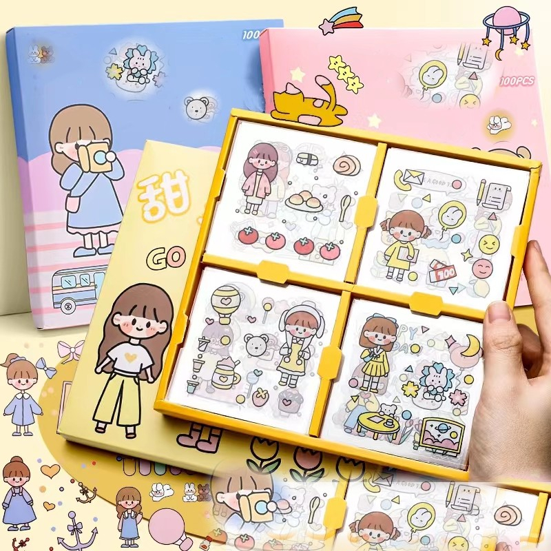 100pcs/box Cute Waterproof Stickers Set Scrapbook Diary Craft PET Transparent Sticker Set Stationary