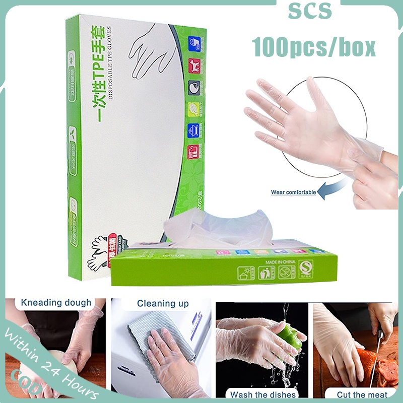 100pcs/box Disposable Clear Plastic Gloves TPE Food Grade Gloves for Kitchen Cooking Cleaning