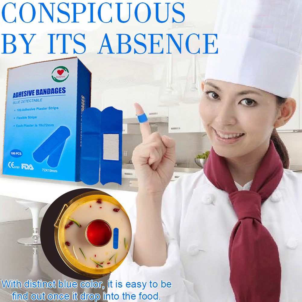 100pcs Waterproof Band Aid Blue Metal Detectable Bandage For Wounds