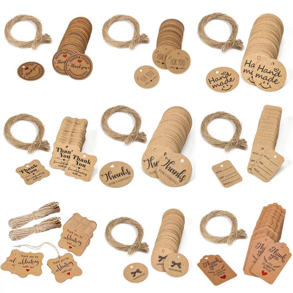 100pcs/lot packaging label handmade tag kraft paper label thank you gift tag