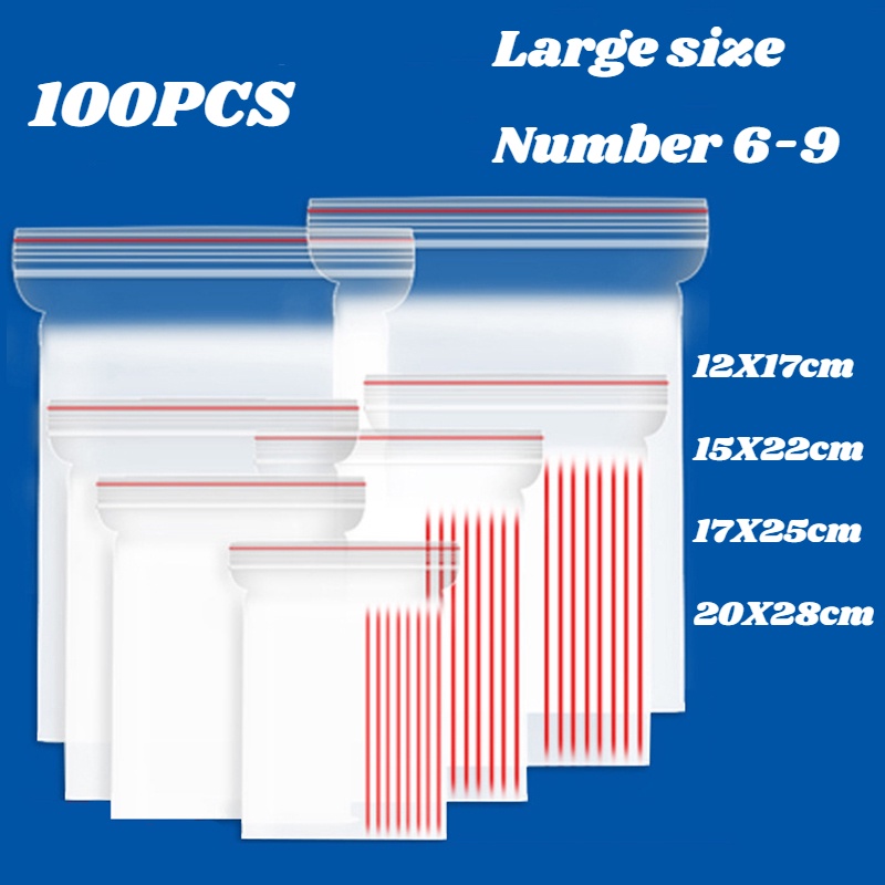 100pcs/pack Large Size Zip Lock Plastic Bags Reclosable Transparent Bag Vacuum Storage Bag Clear Bags Thickness 0.05mm