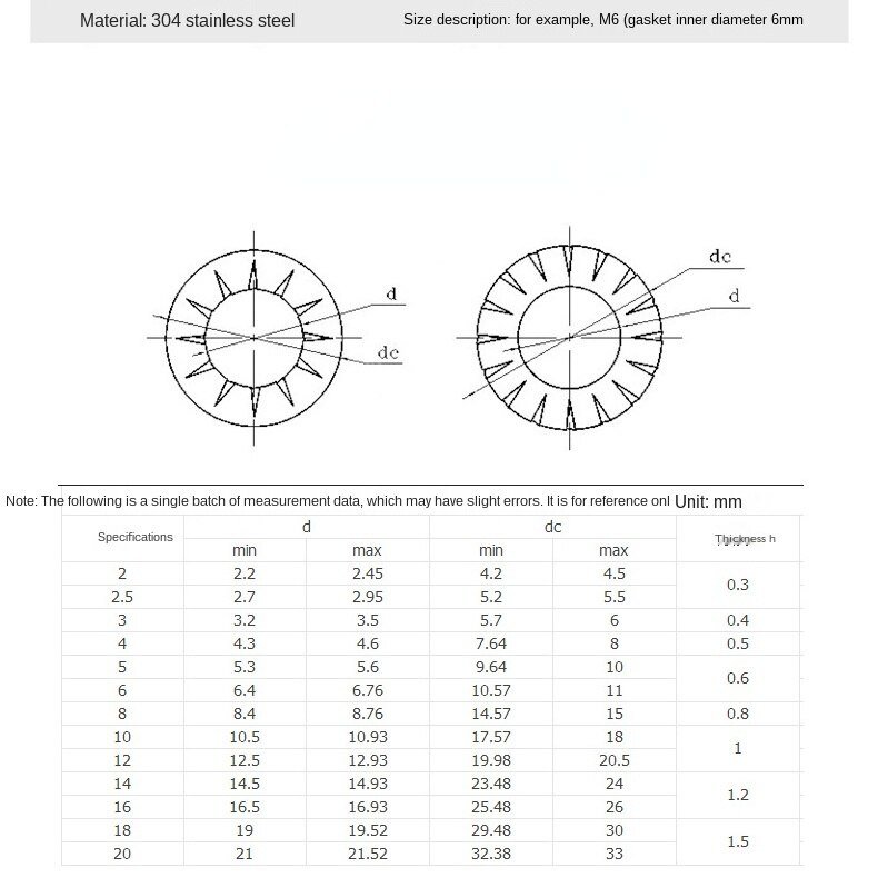 100pcs serrated washers and lock washers internal and external serrations 304 stainless steel
