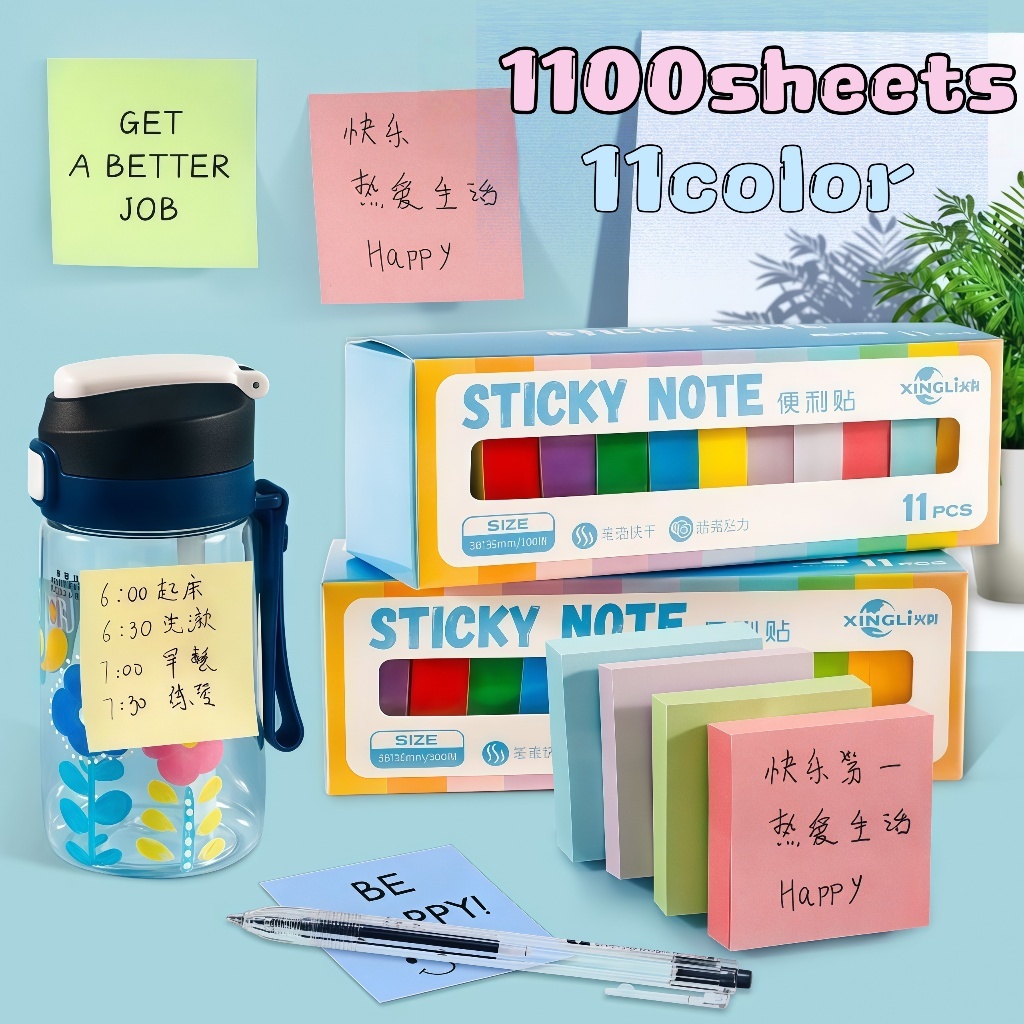 1100sheets Colorful Small Square Sticky Notes Mini Note Paper Memo Pad School Supplies