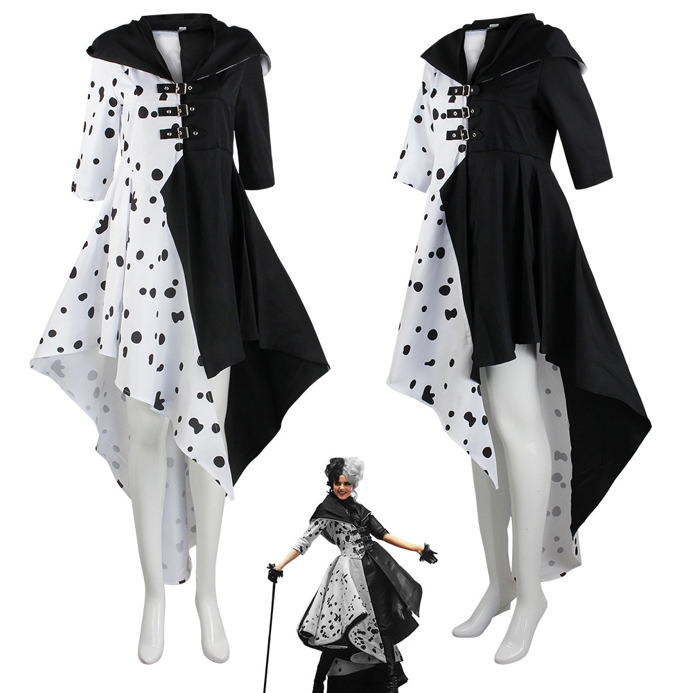 101 Dalmatians Black White Witch Cruella de Deville cosplay Dress Performance Costume